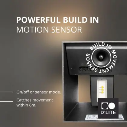 Beschreibung D'Lite Wandleuchte Elingen Aluminium Schwarz Up & Down 2.9W 170lm - 830 Warmweiß | IP65 - Batteriebetrieben - Lichtsensor