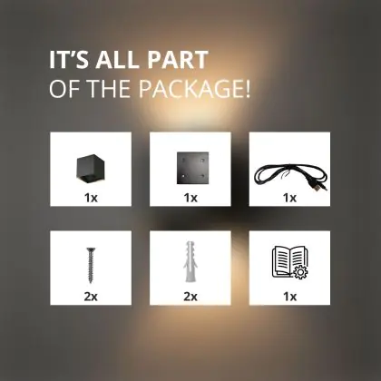 Wie bei allen D'Lite-Produkten wird auch diese Wandleuchte in einer umweltfreundlichen, plastikfreien Verpackung aus 100% recyceltem Karton geliefert. Befestigungsmaterialien wie Schrauben sind selbstverständlich im Lieferumfang enthalten.