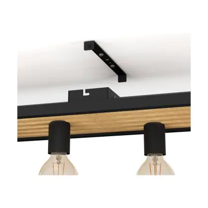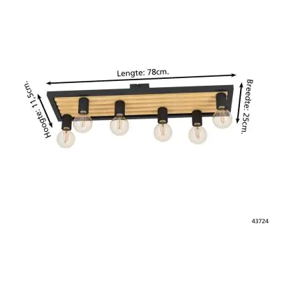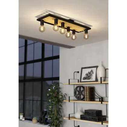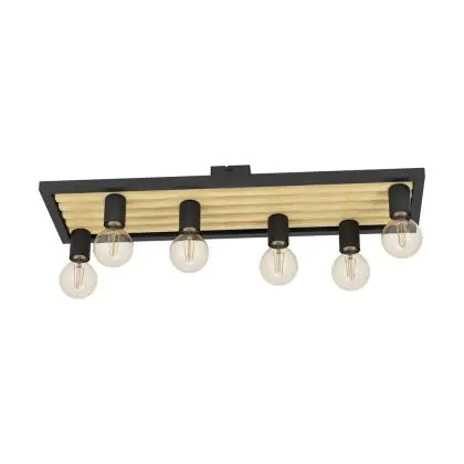 Eglo Deckenleuchte Consett Stahl Holz Schwarz Braun | IP20 - Geeignet für 6x E27