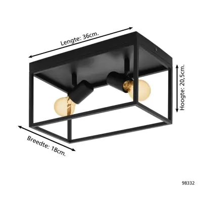 Eglo Deckenleuchte Silentina Stahl Schwarz | IP20 - Geeignet für 2x E27
