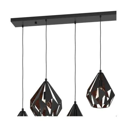 Eglo Pendelleuchte Carlton 1 Stahl Schwarz Bernstein | IP20 - Geeignet für 6x E27
