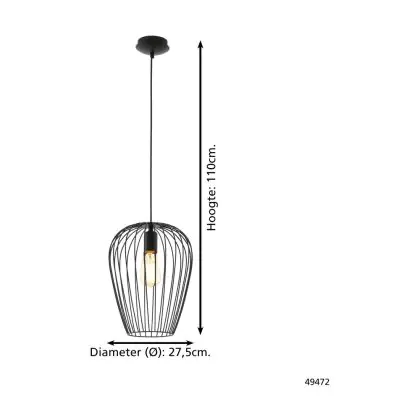 Eglo Pendelleuchte Newtown Stahl Schwarz | IP20 - Geeignet für 1x E27