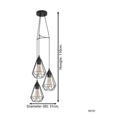 Eglo Pendelleuchte Tarbes Stahl Schwarz | IP20 - Geeignet für 3x E27