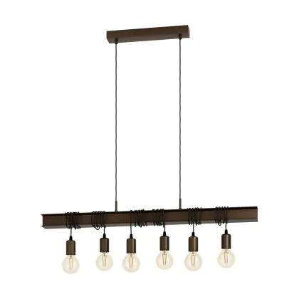 Eglo Pendelleuchte Townshend 4 Stahl Braun Schwarz | IP20 - Geeignet für 6x E27