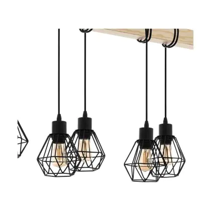 Eglo Pendelleuchte Townshend 5 Stahl Holz Schwarz | IP20 - Geeignet für 6x E27