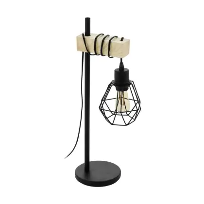 Eglo Tischlampe Townshend 5 Stahl Holz Schwarz | IP20 - Geeignet für 1x E27