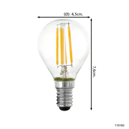 Description Eglo LED Boule E14 Filament Claire 4.5W 470lm - 827 | Dimmable - Remplacement 40W