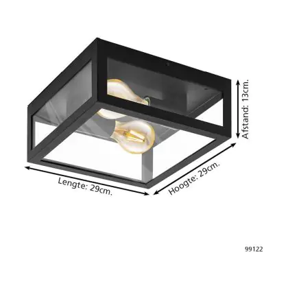 Eglo Mur et Plafonnier Amezola Échantillon Noir | IP44 - Convient pour 2x E27