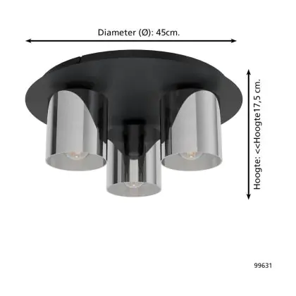 Eglo Plafonnier Gorosiba 1 Échantillon Noir | IP20 - Convient pour 3x E27