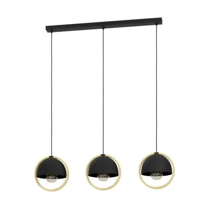 Eglo Suspension Luminaire Callow Échantillon Bois Noir Brun | IP20 - Convient pour 3x E27