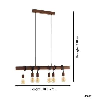 Eglo Suspension Luminaire Townshend 4 Échantillon Brun Noir | IP20 - Convient pour 6x E27
