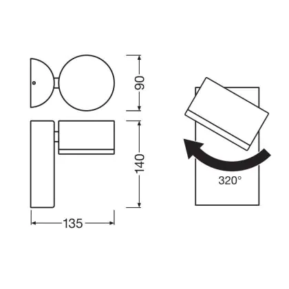 Description Ledvance Luminaire LED à tête rotative d'extérieur 8W 3000K Gris