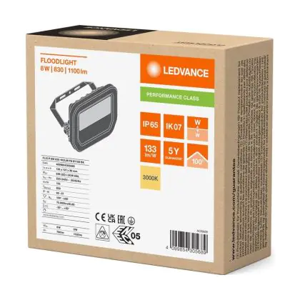 Le Ledvance Projecteur LED Aluminium Noir 8W 1100lm 100D - 830 | IP66 - Symétrique permet une économie d’énergie importante tout en conservant une excellente qualité d’éclairage. Sa technologie LED Intégré lui permet également d’avoir une très longue durée de vie pouvant aller jusqu’à 100000 heures. Ce projecteur LED est étanche, avec son indice de protection IP66 – Résistant à la poussière et à l'eau (fortes projections) lui permettant d’être hermétique à la poussière et à l’eau. Disponible dans la couleur 3000K - Blanc Chaud et un flux lumineux de 1100 Lm, ce projecteur LED est la solution idéale pour le remplacement de vos anciens projecteurs conventionnels.