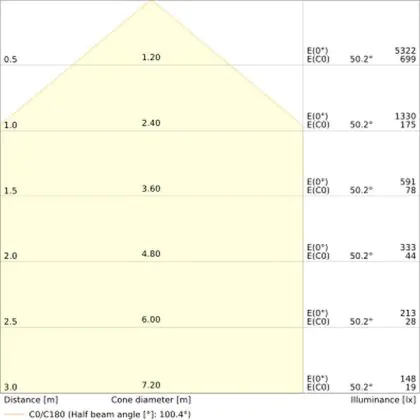 - Angle de diffusion: 100 °