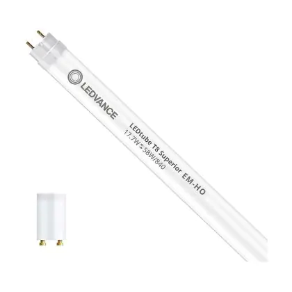 Ce tube LED Lot 10x Ledvance Tube LED T8 Superior (EM/Direct 230V) High Output 17.7W 3100lm - 840 Blanc Froid | 150cm - Remplacement 58W est l’un des produits les plus éconergétiques en remplacement des tubes T8 classiques. Avec ce tube LED vous êtes donc assuré de sa qualité. Avec une puissance de seulement 17.7 W, ce tube LED a la même intensité lumineuse qu’un tube classique qui consomme 58 W. P>