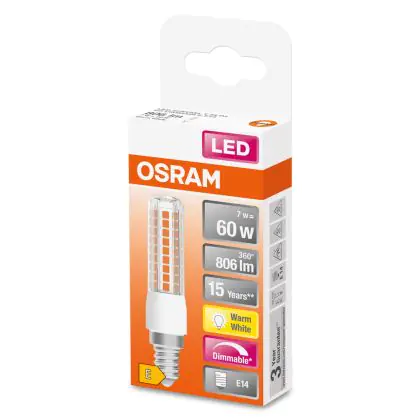 Cette ampoule Lot 10x Osram Special T LED E14 Claire 7W 806lm - 827 | Dimmable - Remplacement 60W avec son efficacité lumineuse de lumen par watt vous permettra de profiter d’un éclairage de qualité. Avec sa durée de vie de 15000 heures, vous n’aurez pas à vous soucier de son remplacement avant quelques années.