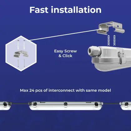 La réglette LED, Lot 4x Réglette LED Étanche V3.0 10-18W 1300-2520lm - 830-865 CCT | 60cm - Câblage Traversant (5x2.5mm2) est conçue pour remplacer les réglettes TL-D traditionnelles et permettant d’économiser jusqu’à 50% d’énergie. Très souvent utilisé pour l’éclairage d’entrepôts, d’usines, de parking et d’autres grands espaces extérieurs. Très simple d’installation, cette réglette de 60cm peut se fixer au plafond et au mur et projette 3000K - 4000K - 6500K CCT, comme couleur de lumière. La Lot 4x Réglette LED Étanche V3.0 10-18W 1300-2520lm - 830-865 CCT | 60cm - Câblage Traversant (5x2.5mm2) dispose d’un indice de protection IP65 – Résistant à la poussière et à l'eau (jets d'eau) à l’eau et la poussière et d’une résistance aux chocs IK10.