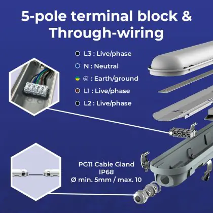 Description Lot 4x Réglette LED Étanche V3.0 10-18W 1300-2520lm - 830-865 CCT | 60cm - Câblage Traversant (5x2.5mm2)