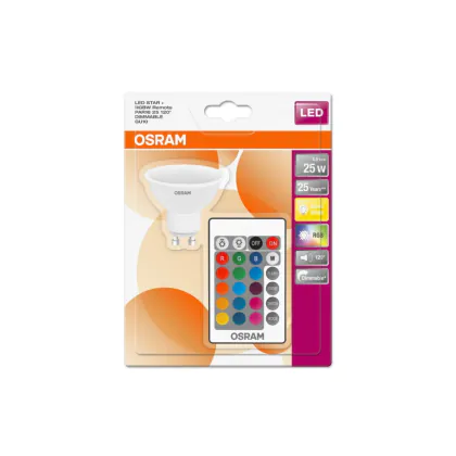 Description Osram Parathom Retrofit Spot LED GU10 PAR16 2,9W 250lm 120D - 827 Blanc Très Chaud | RGBW - Dimmable - Télécommande - Remplacement 25W