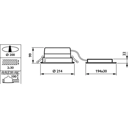 Description Philips Spot encastrable LED LuxSpace Compact bas DN570B 20.9W 2600lm 80D - 840 | 214mm - Dimmable - Aluminium Réflecteur - Power Over Ethernet