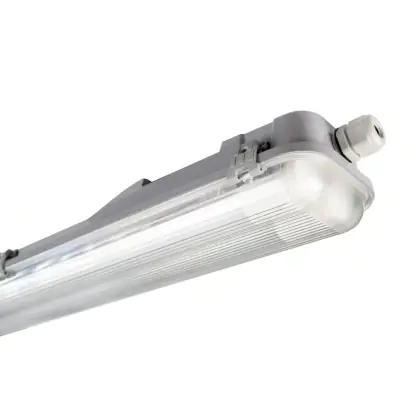 La réglette LED, Réglette LED Étanche Logement 150cm for 2x58W Tubes LED (EM) est conçue pour remplacer les réglettes TL-D traditionnelles et permettant d’économiser jusqu’à 50% d’énergie. Très souvent utilisé pour l’éclairage d’entrepôts, d’usines, de parking et d’autres grands espaces extérieurs. Très simple d’installation, cette réglette de 150cm peut se fixer au plafond et au mur et projette , comme couleur de lumière. La Réglette LED Étanche Logement 150cm for 2x58W Tubes LED (EM) dispose d’un indice de protection IP65 – Résistant à la poussière et à l'eau (jets d'eau) à l’eau et la poussière et d’une résistance aux chocs IK08.