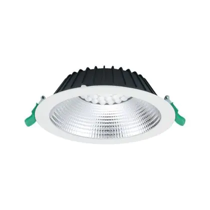 Les spots LED encastrables (aussi appelés Downlights) sont des solution éco-énergétiques permettant de remplacer les spots classiques équipés de technologie à fluorescence. Ce downlight Sylvania Spot Encastrable LED Insaver 205 Aluminium Blanc 20W 2500lm 70D - 840 Blanc Froid | Diamètre 205mm - IP44 est conçu pour remplacer un spot classique de 2x26. La consommation de ce downlight LED est considérablement plus faible qu’un luminaire classique, à savoir, seulement 20 watts. Une économie d’énergie sans compromettre la qualité de la lumière. Le flux lumineux est de 2500 lumens. La lumière de ce downlight LED est diffusé à 70 degrés et offre un bon rendu des couleurs. La durée de vie moyenne de ce luminaire LED est de 100000 heures.